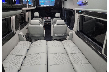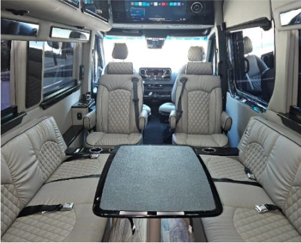 Our 2025 Mercedes-Benz Sprinter Van, manufactured by Ultimate Toys, is the only Sprinter Van in the market with the versatility to change from a transportation vehicle to a comfortable RV and/or a luxurious mobile office. This is the perfect RV for travel, the ultimate family van, and a go-to entertainment vehicle. Our amenities include a shower, toilet, sink, refrigerator, microwave, WiFi, 2 TVs, bluetooth capabilities, an outside speaker, an outside shower, an electric awning, and exterior TV connectors. A “class B” RV is the only option for travelers who want both convenience and luxurious comfort.
